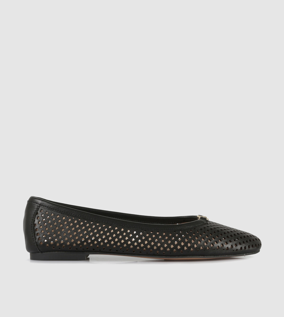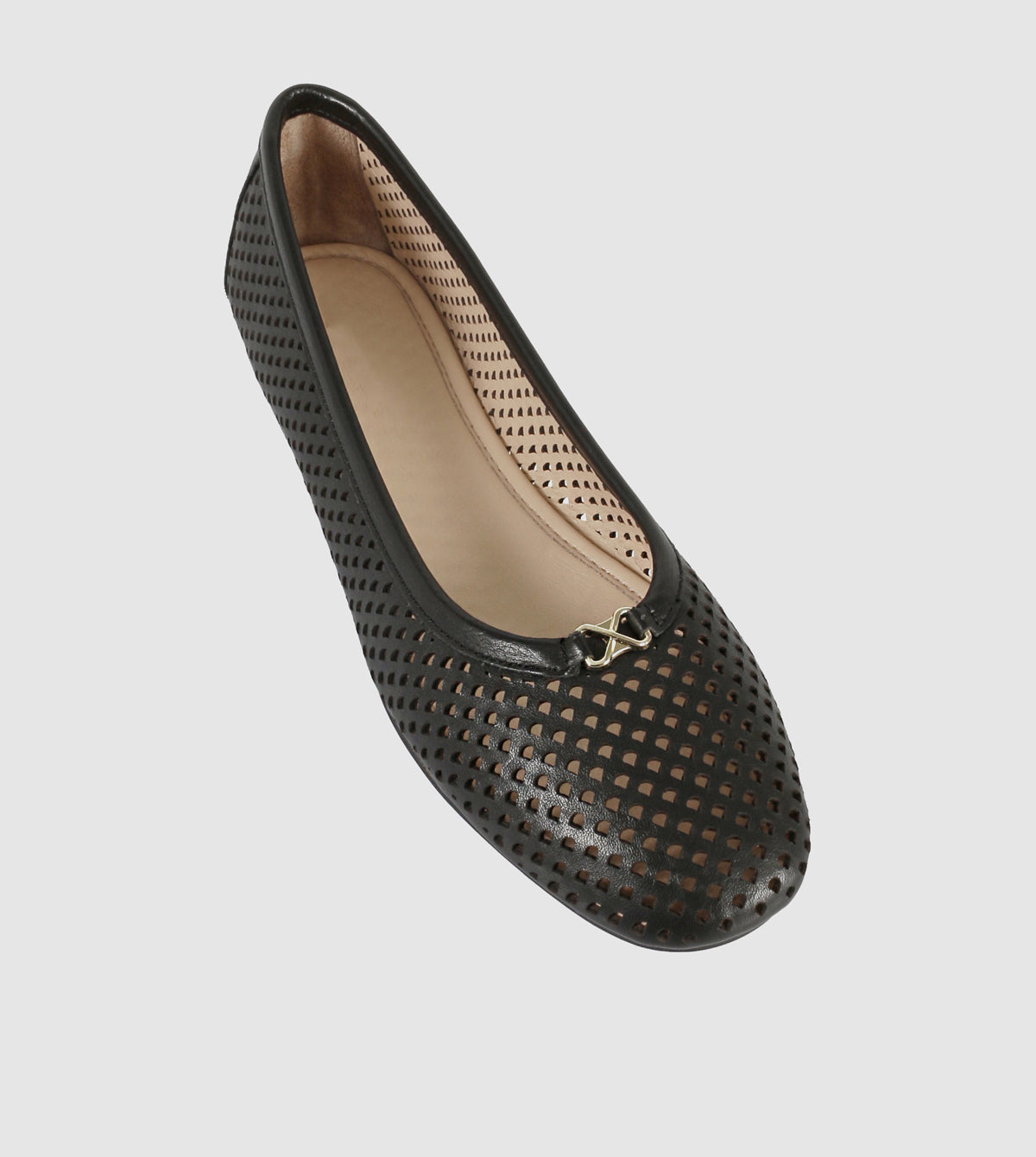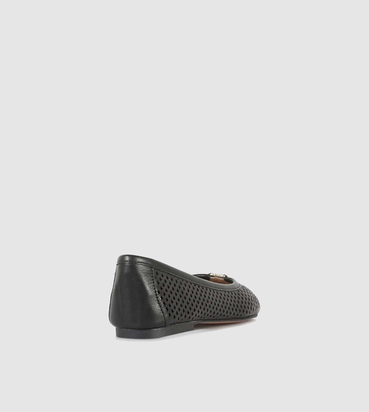 The Ajla Ballerinas by S Sempre Di reimagine the everyday flat with breathable design and subtle detail. Crafted with a perforated premium leather upper, this lightweight style allows air to circulate while offering a polished finish. A delicate bow accent softens the structured profile, making Ajla a versatile pair that balances comfort and femininity from desk to dinner.