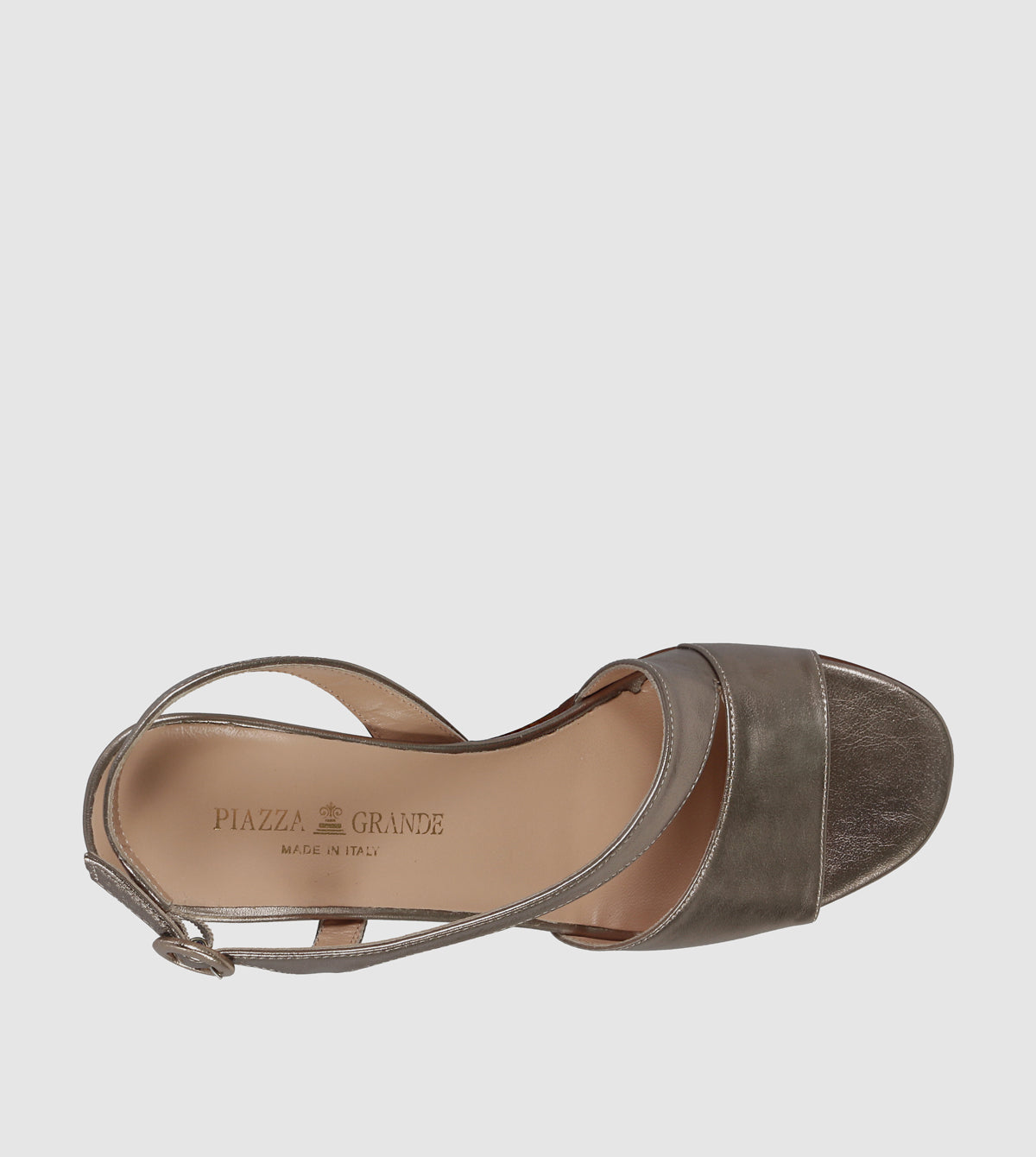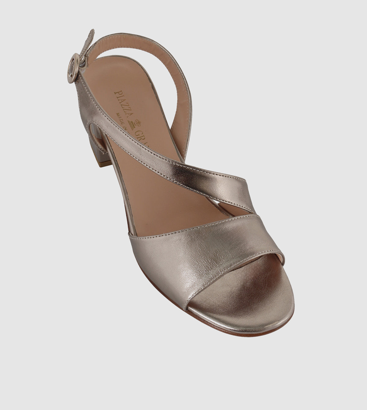 The Sabina Block Heels by Piazza Grande embody refined Italian craftsmanship in a timeless silhouette. Crafted in metallic leather, the sandal features softly contoured crossover straps that frame the foot with ease, balanced by a supportive slingback strap and rounded buckle detail. Set on a mid block heel, Sabina delivers comfort and stability with a touch of understated shine — an elegant option for both everyday wear and special occasions.