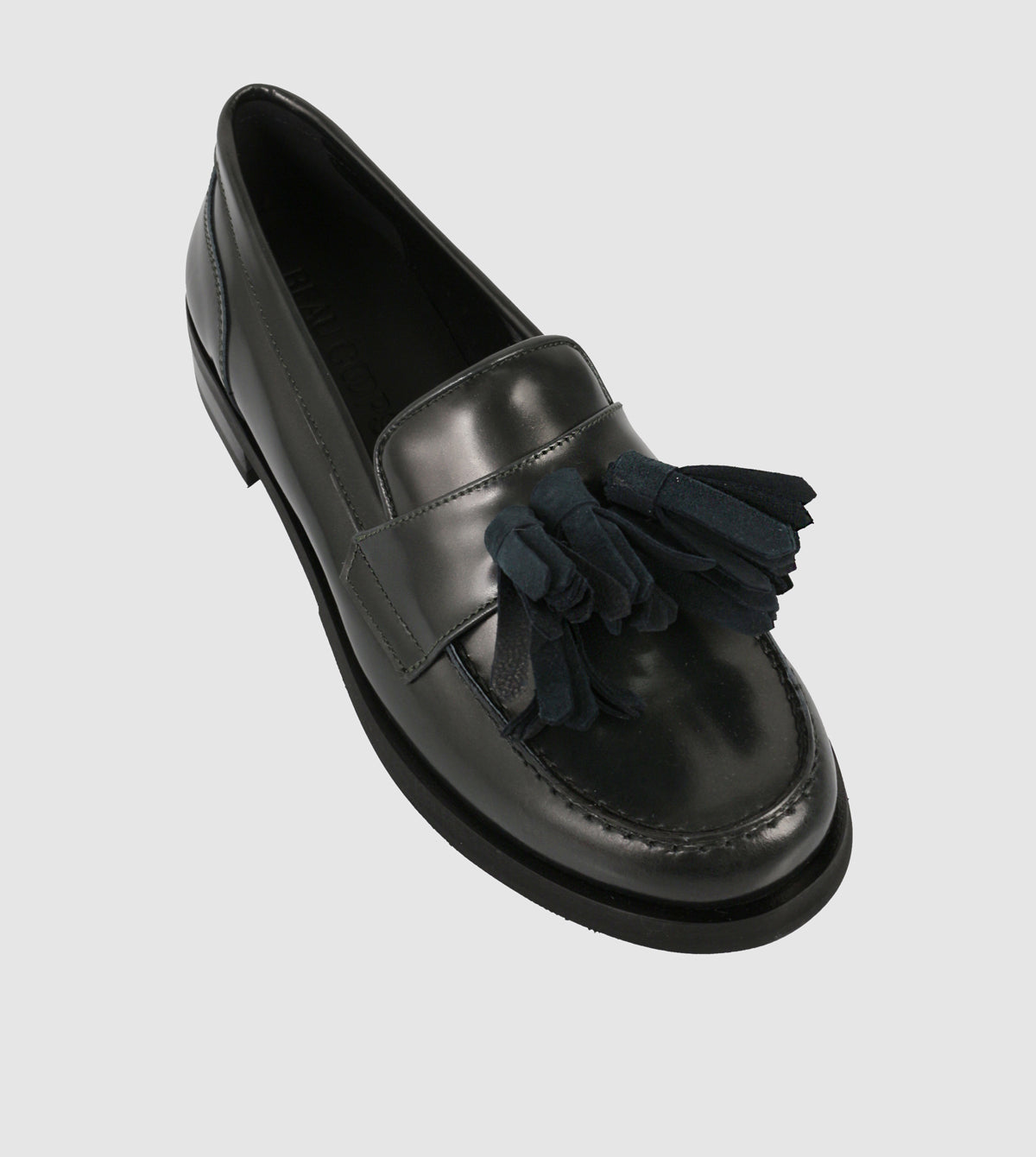 The Kambala Casual Loafers by Beau Coops are Italian-made leather loafers that masterfully blend traditional heritage with a bold, modern edge. Expertly crafted from premium polished leather, these shoes are available in rich bordeaux and deep forest green. Defined by a striking, oversized suede fringe tassel across the vamp, the Kambala features a robust silhouette and a low block heel, offering a sophisticated statement piece for high-fashion urban wear.