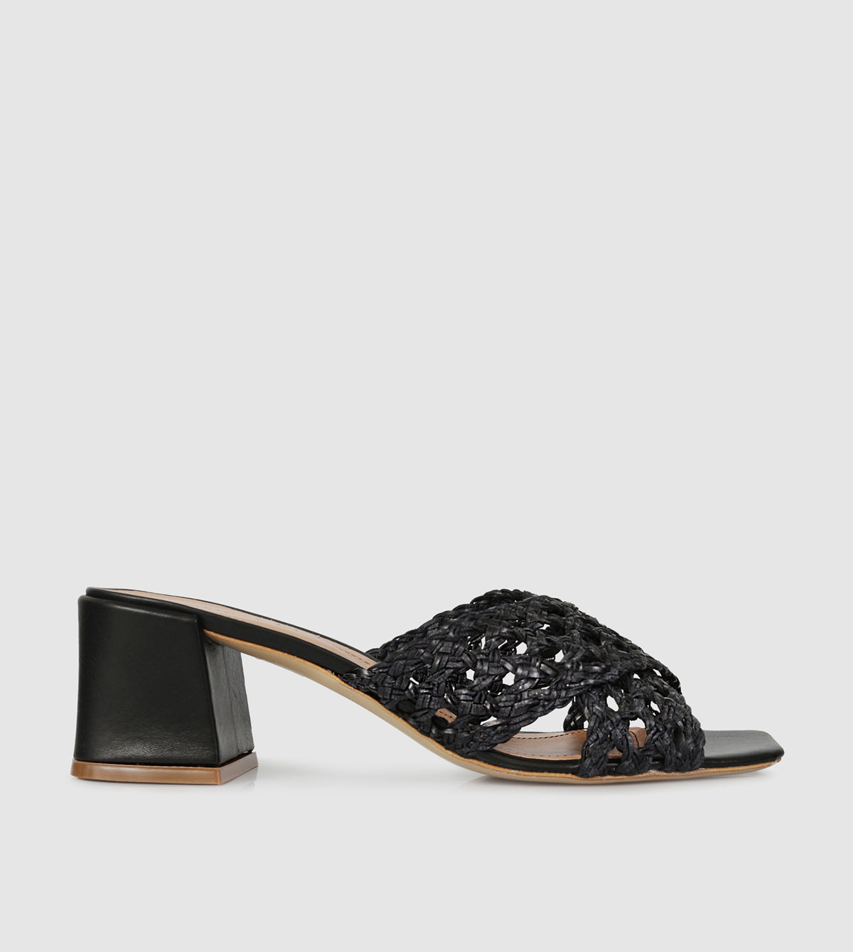 Keep your feet cool and stylish this summer with Reliana Mules by Sempre di. Designed in Italy, these slides feature a trendy cross over design and an open basket weave pattern. The cool block heel adds a touch of sophistication to any summer outfit. A must-have addition to your wardrobe.